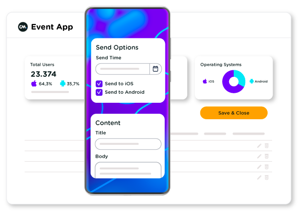 Be in control of the mobile visitor experience from A to Z. Wave goodbye to countless logins, take advantage of one integrated system and grow your event.
